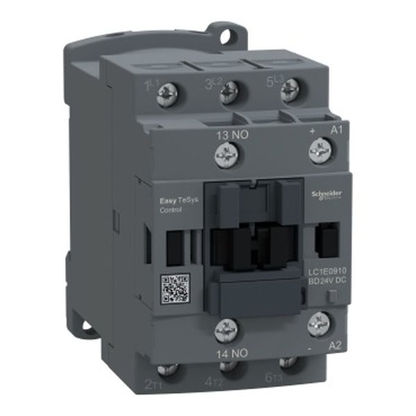 O LC1E0910BD é um dispositivo de manobra elétrica pertencente à linha Easy TeSys da Schneider Electric. Este contator tripolar foi desenvolvido para o controle de cargas em circuitos de potência de até 690 V CA, operando com uma corrente nominal de 9 A em categoria AC-3 (motores trifásicos). O componente conta com uma bobina de acionamento em corrente contínua (24V CC) e um contato auxiliar integrado do tipo Normal Aberto (1NA), permitindo a interface direta com sistemas de automação e CLPs que utilizam essa tensão de comando.